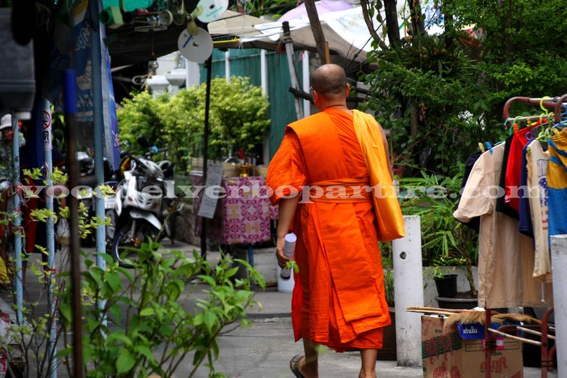 Poi, all’improvviso, anche i pick-up smettono di circolare. Le viuzze si stringono in una successione di casette dai mille colori, la cui immagine è esaltata dal profumo di bucato e cibo delizioso. Incontriamo vecchi e suggestivi templi. Il silenzio ci accompagna nel cammino. Il silenzio a Bangkok… Avete idea di cosa possa significare ascoltare il silenzio, in questa metropoli che non si ferma mai?