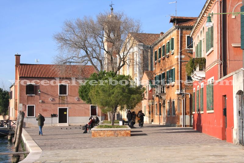 Piazza Baldassarre Galuppi, è la principale dell’isola. La raggiungiamo solo dopo una fuga dalla folla di turisti, sbarcata in contemporanea con noi. Lasciamo a loro le vie piene di botteghe e negozi, mentre noi ci godiamo il silenzio di ponticelli, canali e pittoriche calli.