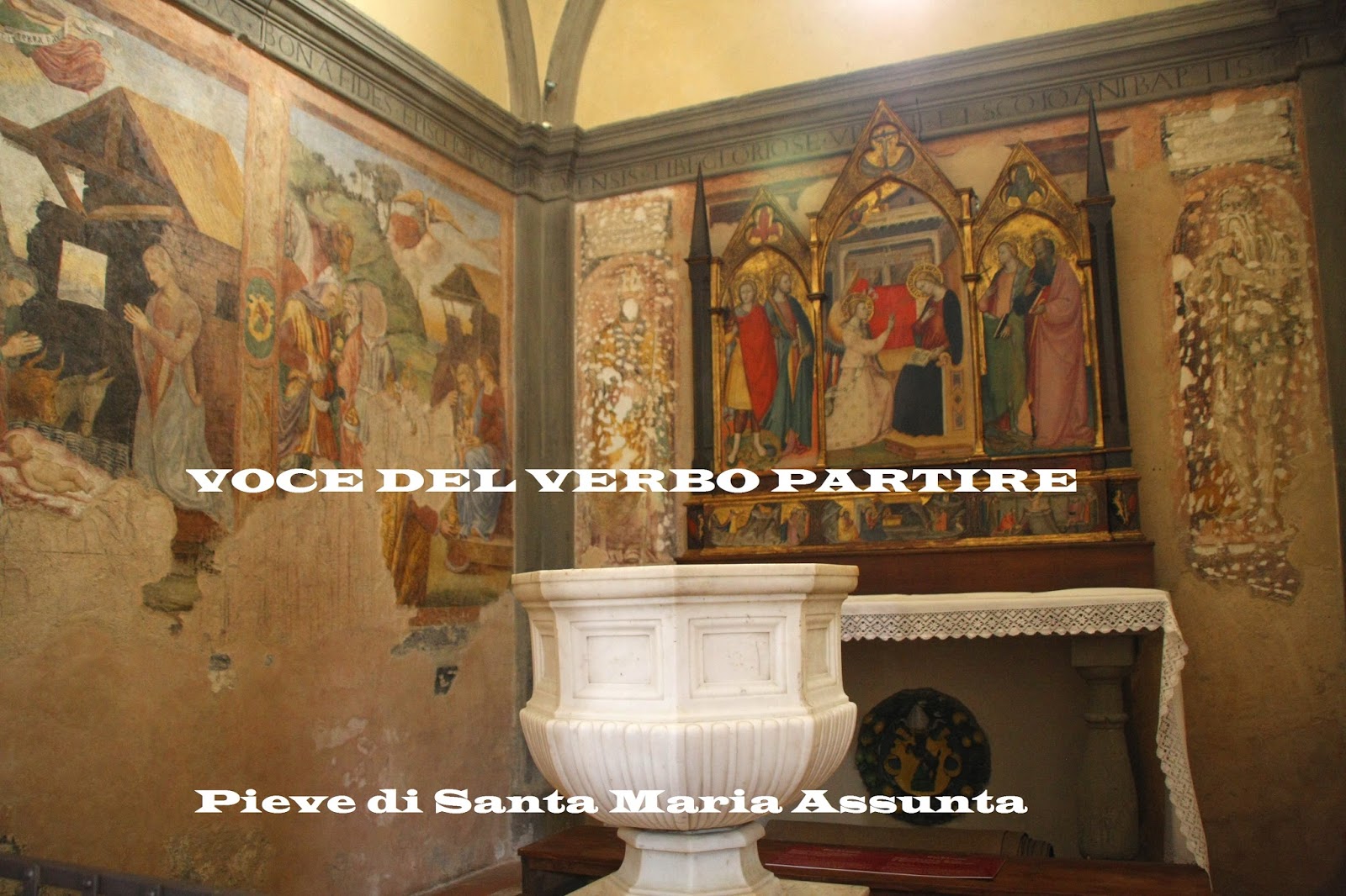 Prima di ripartire visitiamo la Pieve di Santa Maria Assunta. Lasciamo fuori la luce forte del sole, le risate allegre che si spandono nella piazza, il profumo dei gerani, e ci immergiamo nella silenziosa oscurità di questa mirabile struttura romanica. Si tratta di un edificio antichissimo, citato già nei primi anni del XII secolo, anche se la struttura venne riedificata dai Conti Guidi nel 1150 circa. Nel Settecento la Pieve fu completamente ridimensionata per creare spazio nella piazza. Pertanto si mantennero solo i muri laterali, mentre la facciata e l’abside furono demolite e rimaneggiate. In effetti appena entro, resto momentaneamente basita trovandomi in un ambiente così palesemente romanico!