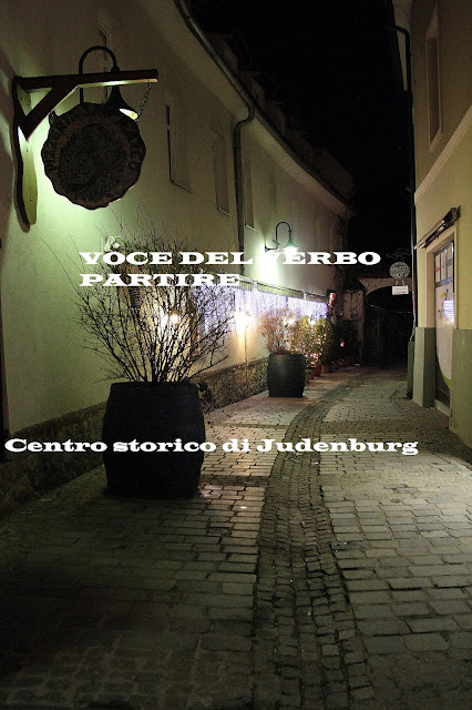 La prossima meta è quella che, ad essere onesti, ci delude maggiormente. Arriviamo tardi a Judenburg, quando ormai è buio, dopo un’ora d’auto. Ci accoglie una bella piazza, su cui svettano la torre, che ospita il planetario, e la cattedrale; al centro dello slargo, di fronte all’edificio del Rathaus, ci sono ancora le casette del Mercatino di Natale, ovviamente chiuse.