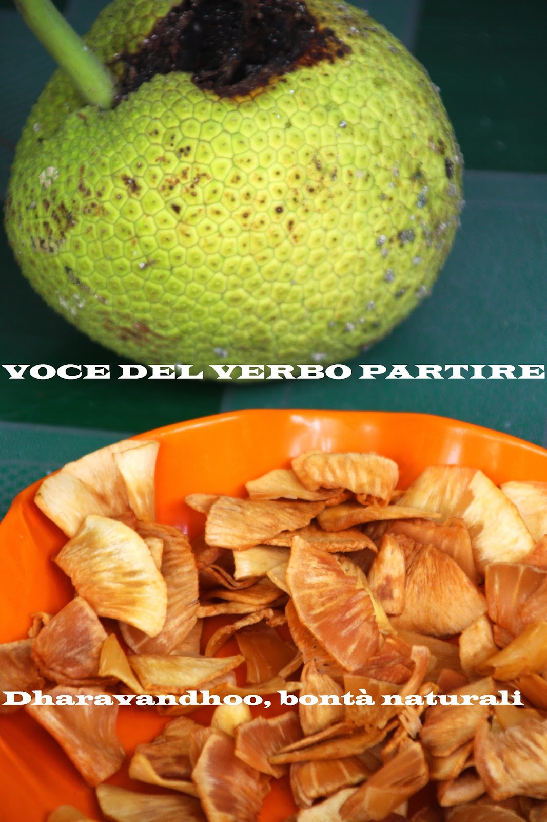 Lucia ci fa fare una sosta, mentre il suo ragazzo va a prendere acqua fresca per tutti: il sole non sarà forte, ma l’aria è torrida, umida e non si solleva un refolo di vento per rinfrescarci. Oltre all’acqua arrivano anche deliziose chips ottenute dal frutto dell’albero del pane, che vengono tagliate finemente, poi fritte in olio di semi. Fantastiche!