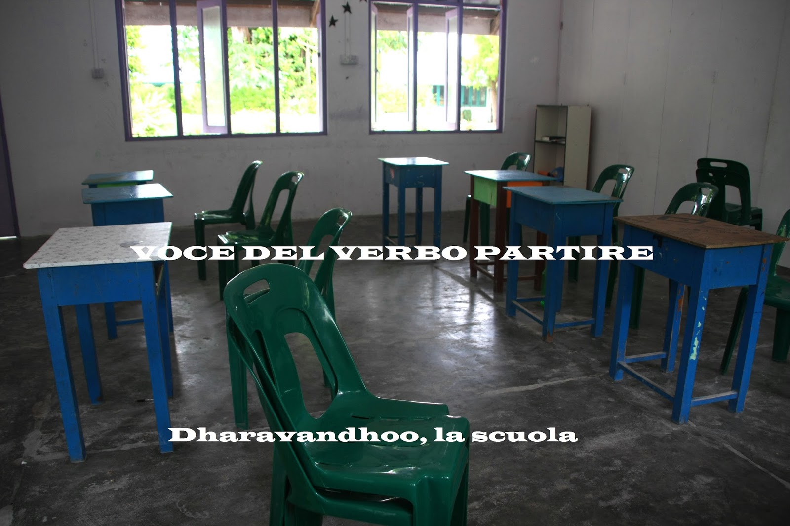 Proseguiamo con la visita della scuola, dove questa mattina siamo passati senza entrare: l’edificio è nuovo e colorato, mentre gli interni sono di una semplicità basilare. Qui a Dharavandhoo ci sono le classi fino a quelle che corrispondono alle nostre medie; dopodiché se i ragazzi vogliono proseguire negli studi devono trasferirsi a Male, ospitati da qualcuno della famiglia.
