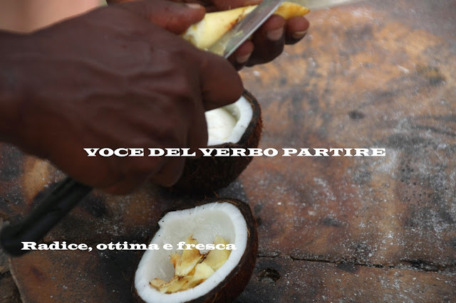 Iniziamo con quelli che sono gli svariati usi della noce di cocco: da noi si dice che del maiale non si butta via niente, direi che la noce di cocco alle Maldive fa la stessa fine! Dalla radice, che viene tagliata a pezzi e gustata per il suo fresco sapore, tanto simile a quello del carciofo; alla polpa interna dalla consistenza spugnosa, usata soprattutto per i succhi; al frutto che anche noi mangiamo qui in Europa, ogni parte del cocco viene utilizzata. Ovviamente alla teoria segue la pratica e, tra facce sconvolte e altre deliziate, assaggiamo tutto.