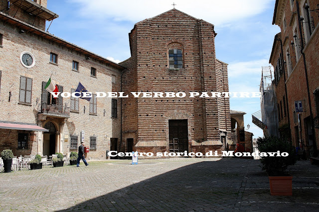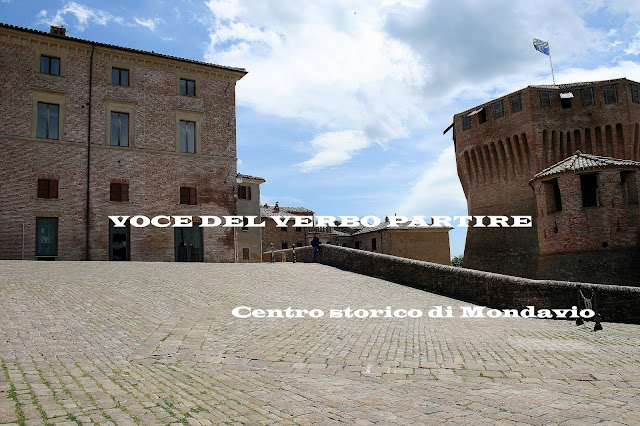 Arriviamo a Mondavio e parcheggiamo Tuono, che squassa la silenziosa calma del pomeriggio con un rombante ingresso in centro, non troppo lontano dalla Rocca Roveresca. Secondo me abbiamo svegliato anche le mummie d’Egitto ma, in fondo, Tuono quando si palesa, desidera farsi notare e sentire da tutti. Una primadonna il nostro piccoletto…
