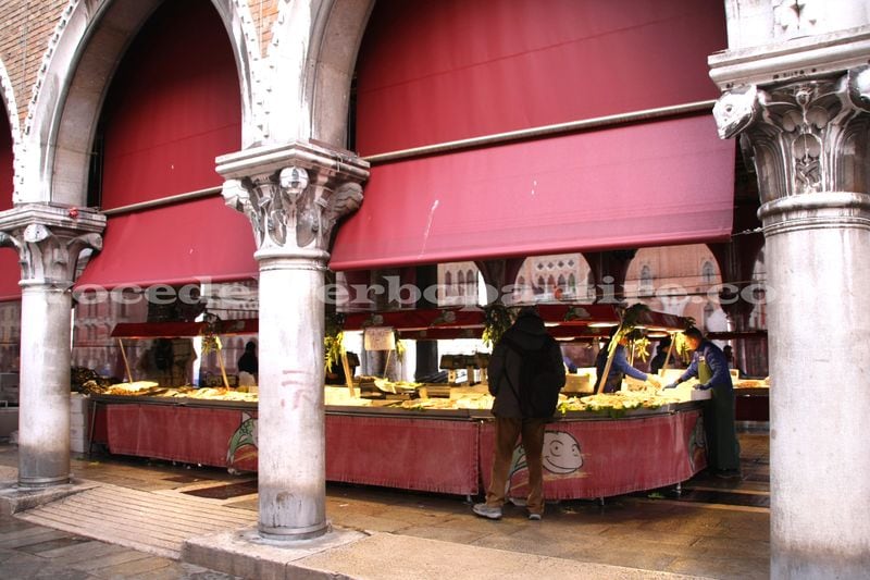 Un’esplosione di colori, nonostante la stagione invernale, di profumi e di vivace compravendita. A pochi giorni dal Natale, infatti, i veneziani ne approfittano per fare scorta di (costosucce) prelibatezze! C’è una gioia mista a rilassatezza nell’aria, che riesce a coinvolgere anche noi. Non possiamo fare a meno di osservare sbalorditi la varietà di merci, esposte con elegante accostamento di tinte. Soprattutto le ciliegie vendute a prezzo d’oro: 30€ al kg!