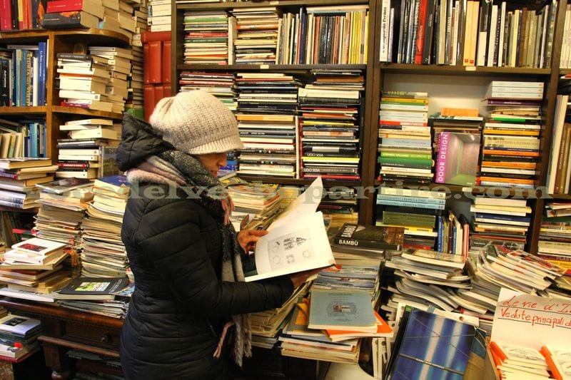 La fortuna vuole che ci siano pochissimi turisti, per cui abbiamo a nostra disposizione interi pittoresche salette piene di libri. Il termine ‘cataste’, rende meglio l’idea. Ed io mi sento a casa.
