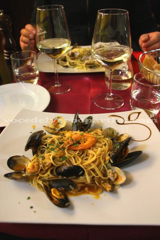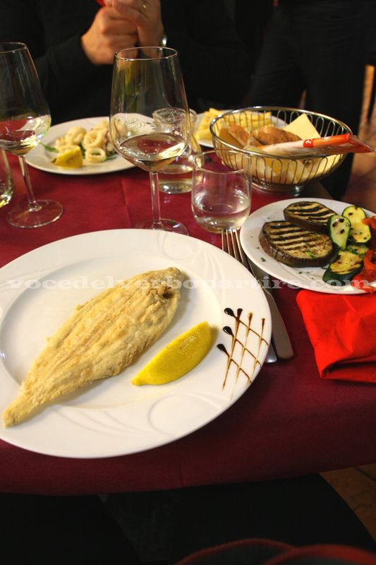 A Venezia, però, anche il pesce fresco è imperdibile. La qualità altissima, garantisce piatti semplici ma molto appetitosi. Al ‘Dolfin’, con 50€ abbiamo gustato spaghetti ai frutti di mare, spaghetti alle vongole veraci, fritto di calamari, sogliola fritta, patatine e verdure grigliate. Daniele ha ordinato anche una fetta di dolce al cioccolato. Il tutto accompagnato da acqua e un quarto di prosecco. Ogni pietanza è ottima, seppure i piatti non sono particolarmente abbondanti.