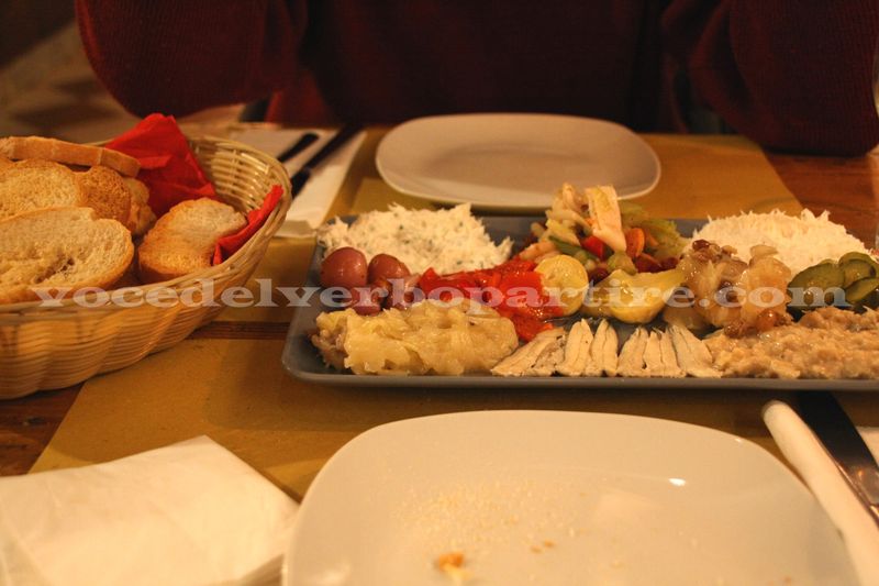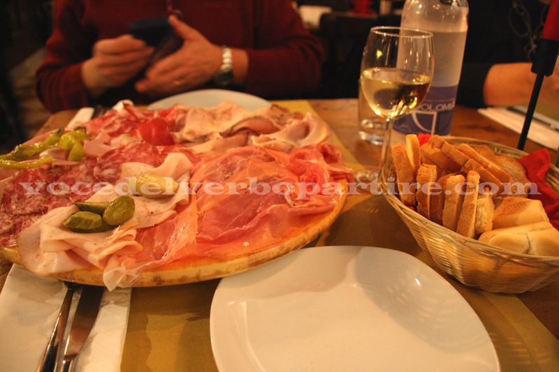 Abbiamo speso 48€, ordinando un immenso tagliere di salumi e sottaceti, un tagliere di ‘cicchetti’ che ci ha fatto sognare, acqua ed un calice di Pinot Grigio. Pane e crostini vengono serviti senza costi aggiuntivi e non si paga nemmeno il coperto.