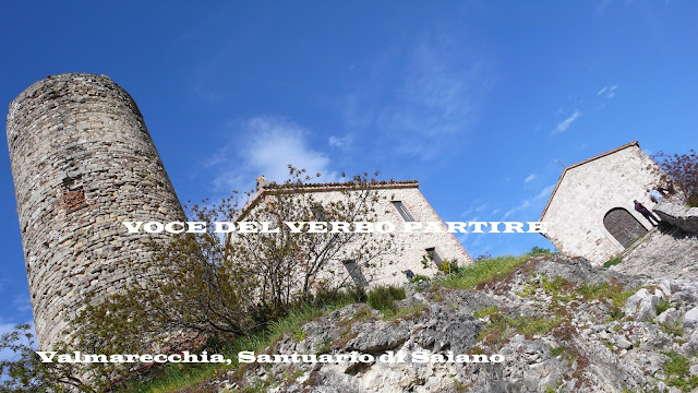 E, il santuario, solido ed affascinante, a dominare la Valmarecchia dal suo sperone di roccia: posizione inconfondibile, che salta agli occhi di chiunque si spinga verso l’entroterra riminese, appena passata la località di Torello.