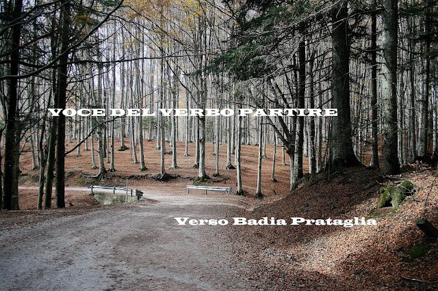 Dal borgo di Camaldoli, una strada che passa attraverso il bosco onduce al Sacro Eremo di Camaldoli. Si tratta del millenario complesso fondato da San Romualdo, così come il Monastero. Una leggera pioggia di foglie ci sfiora, mentre passiamo in moto, prima di andarsi a depositare a terra assieme al tappeto già presente.