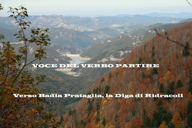 Inoltre, dato che la maggior parte degli alberi spoglia, si può godere di un bellissimo panorama sulla sottostante Diga di Ridracoli. È la prima volta che la vediamo da questa prospettiva! Poco prima di Badia Prataglia, ci fermiamo ad ammirare una bella cascata, circondata da foglie dorate, alimentata dalle piogge degli ultimi giorni.