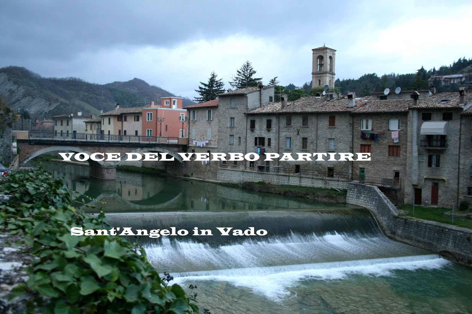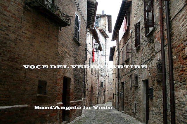 Sant’Angelo in Vado dista meno di dieci km da qui e, attraversando la stretta Valle del Metauro, priva di traffico, la raggiungiamo in pochi minuti.