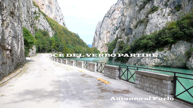 Il fatto di poter pranzare all’aperto, in una pace quasi assordante, con il sole alto in cielo ad inondarci, è meraviglioso; di fronte a noi il grande parco in cui i colori autunnali risplendono e, poco oltre, si scorgono già le pareti della gola e le acque limpidissime.