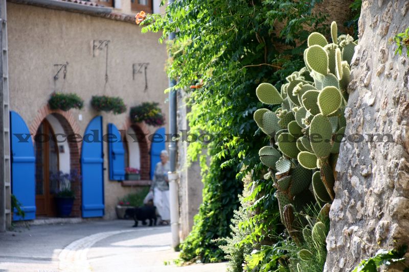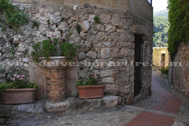 Il profumo dei fiori oggi, è spinto verso di noi dal vento impetuoso, che ci permette si di camminare senza morire di caldo, ma scuote le piante colme di petali colorati, come se volesse portarli via uno ad uno. Quanta magia c’è qui ad Èze! E’ concentrata ed esce fuori con forza da ogni scorcio, nemmeno fosse un fiume in piena di emozioni.