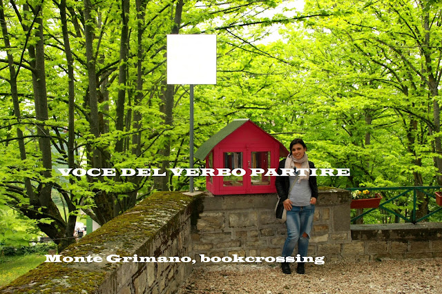 Mentre accediamo al minuscolo e grazioso centro storico di Monte Grimano Terme, ritroviamo segnaletiche che indicano sale lettura e BookCrossing Point. Notiamo delle casette-contenitore fucsia, con all’interno dei volumi e, incuriositi, ci fermiamo ad osservare i libri che vi sono riposti con cura. Io e Daniele ci guardiamo basiti: è trascorso del tempo da quando siamo stati qui l’ultima volta e, ovviamente, tutto questo ci giunge nuovo. Eppure l’idea è assolutamente geniale anche, e sopratutto, per un piccolo angolo del Montefeltro: scambiare e far viaggiare i libri, è un progetto davvero intelligente.