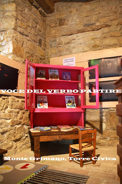 Fiore all’occhiello di questa iniziativa però, è stata quella di creare una sorta si amena e suggestiva sala lettura, all’interno della Torre Civica del XV secolo, posizionata nella parte alta del piccolo borgo di Monte Grimano Terme. Salendo lentamente lungo i vicoli, che si dipanano su un percorso a chiocciola, si raggiunge Piazza Garibaldi, nucleo centrale del paese su cui svetta la Torre Civica, testimonianza architettonica dell’antica roccaforte.