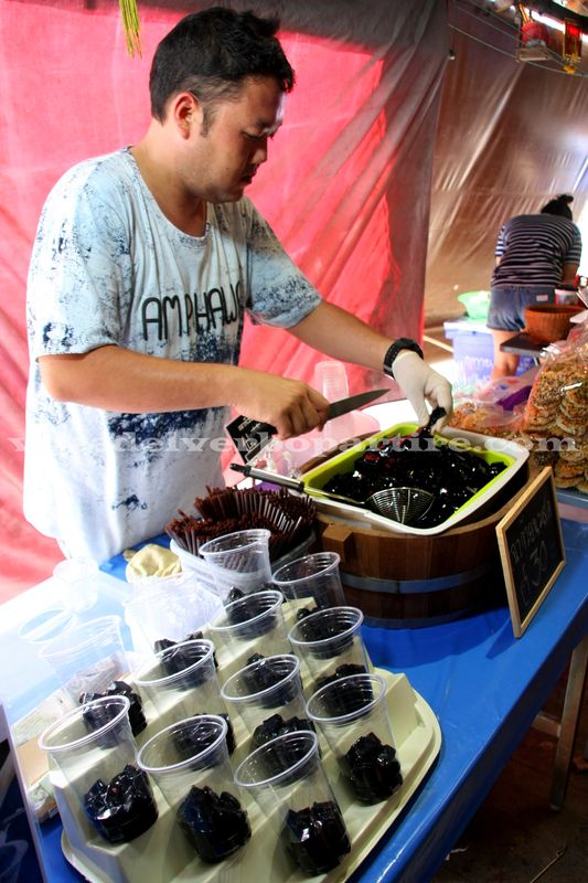 Mentre passeggio nel bel villaggio di Amphawa, tra le case in legno sapientemente conservate, mi crogiolo in un’atmosfera di deliziosa pace, trascorrendo una domenica nello stesso modo in cui la passano i thailandesi: all’aria aperta, circondati da cibo delizioso, di ogni genere e colore, con tanti oggetti e pietanze da acquistare, girando senza meta tra negozietti e bancarelle. Senza pensieri, senza fretta.