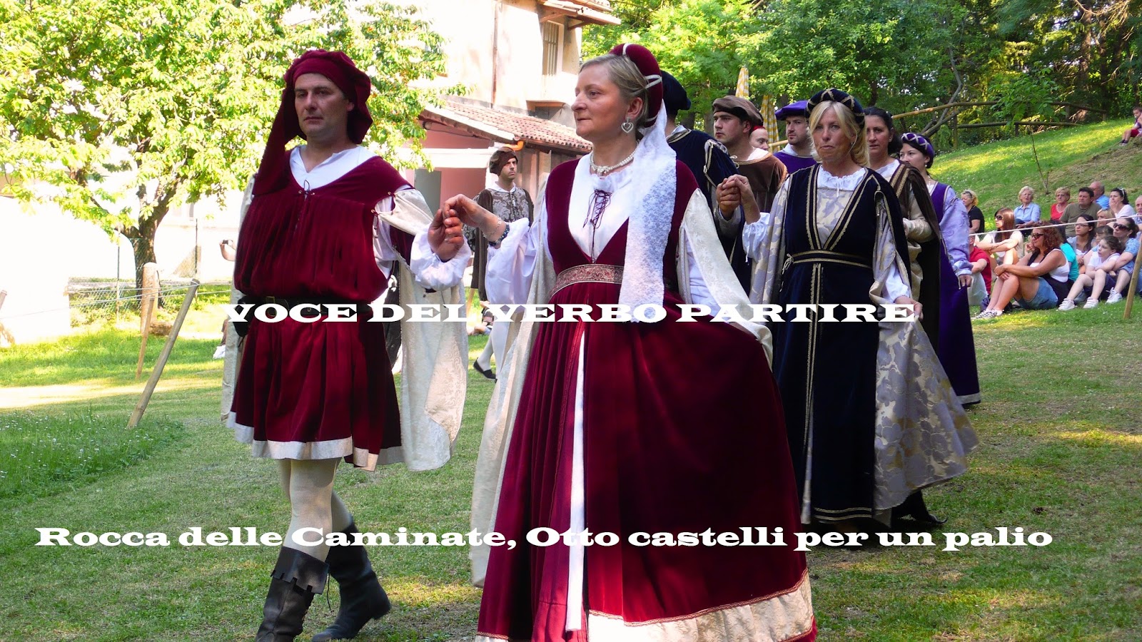 Assistiamo con piacere all’arrivo della Corte, con figuranti elegantissimi, i quali sfilano accompagnati da tamburini e sbandieratori; di seguito ecco i valorosi guerrieri che, con i loro destrieri, si contenderanno il palio. Non prima, però, di aver ammirato gli eleganti giochi di bandiera.