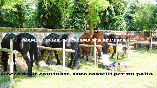 Pertanto, ci incamminiamo verso il campo che ospiterà la contesa del Palio, passando vicino ai meravigliosi cavalli, valorosi e fedeli animali accuditi con amore dai loro cavalieri, che li preparano alla gara.