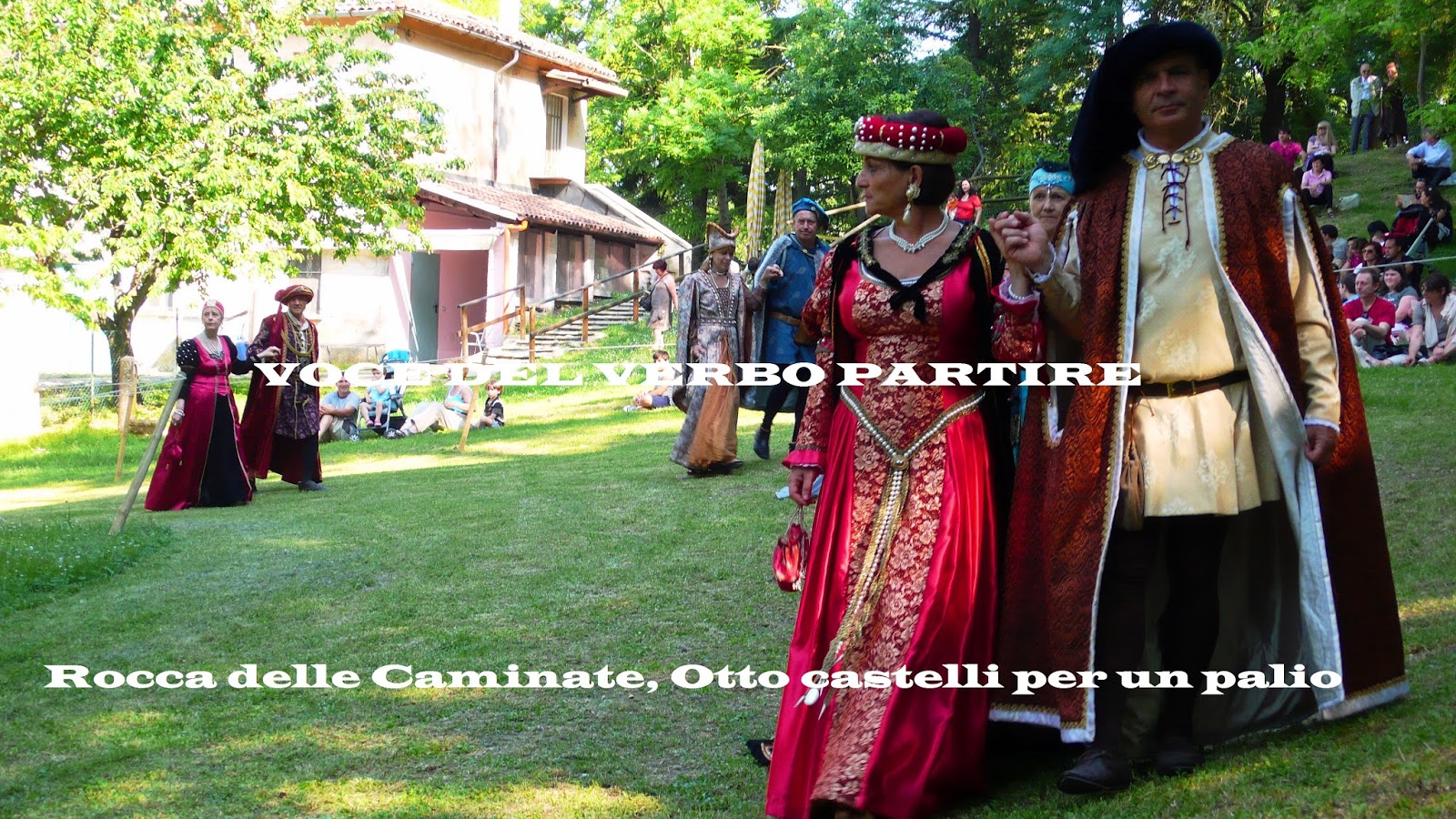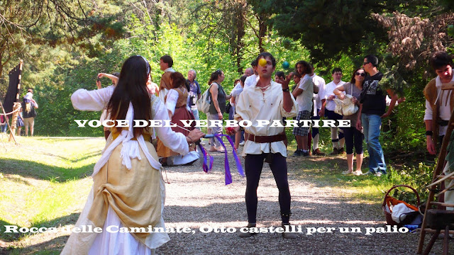 Passeggiamo all’ombra dei frondosi alberi, spostandoci tra accampamenti di armigeri e mercatini medievali, mentre figuranti in costume svolgono quelli che erano gli antichi mestieri, accompagnati dal canto delle cicale.