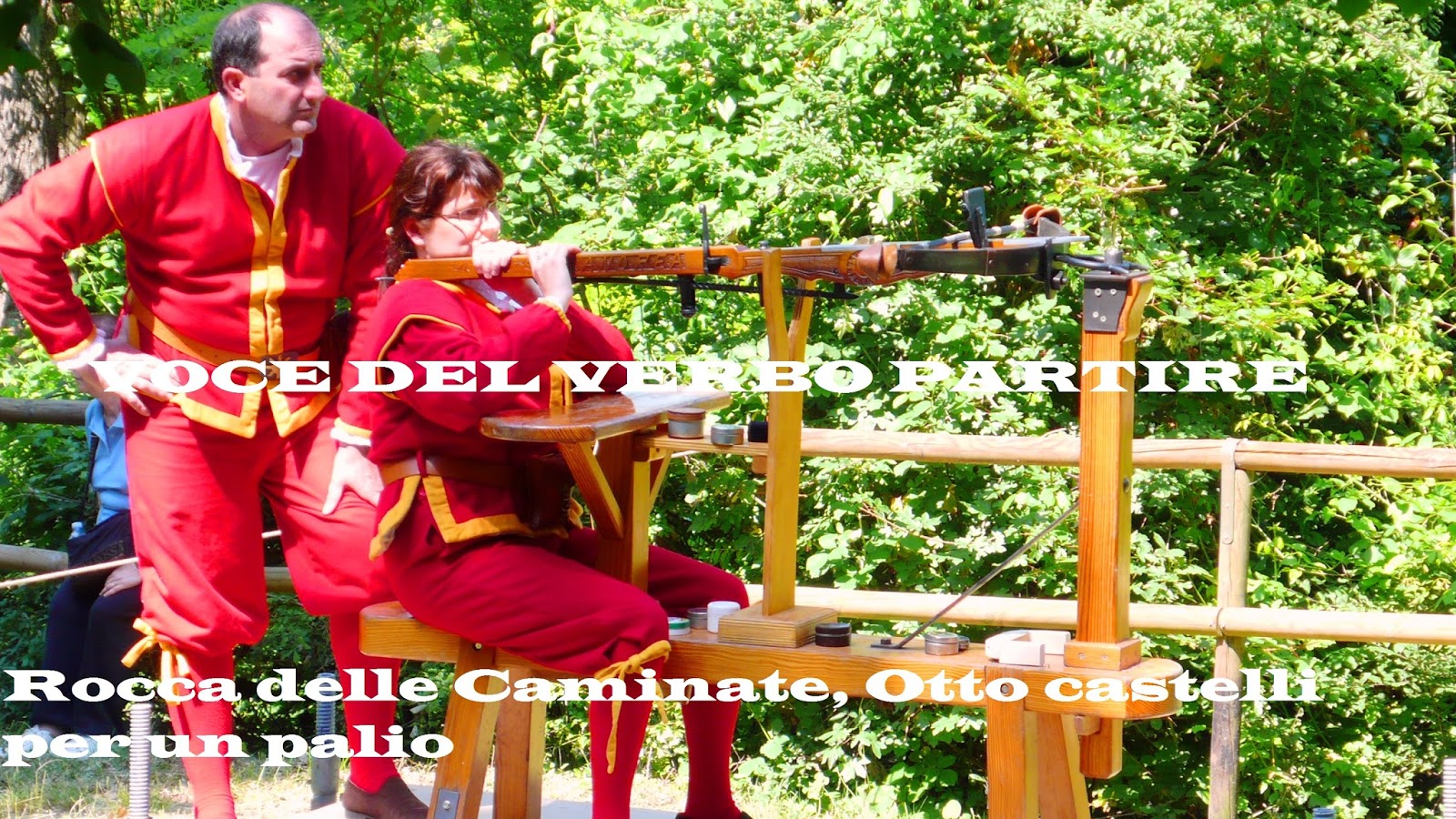 Al termine della gara, veniamo attirati dalle lezioni di tiro con l’arco storico, che si tengono nell’ampio prato soleggiato. Restiamo un pò qui, a guardare i visitatori che si alternano nel ruolo di tiratori e, a dire il vero, anche Daniele vorrebbe partecipare ma, controllando sul programma, ci accorgiamo che si sta avvicinando l’ora in cui si disputerà la Giostra dell’Almoravide.